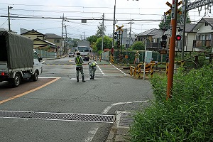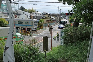 小田急の踏切を渡ります。