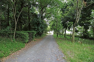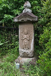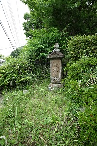 車道の手前右に石仏があります。