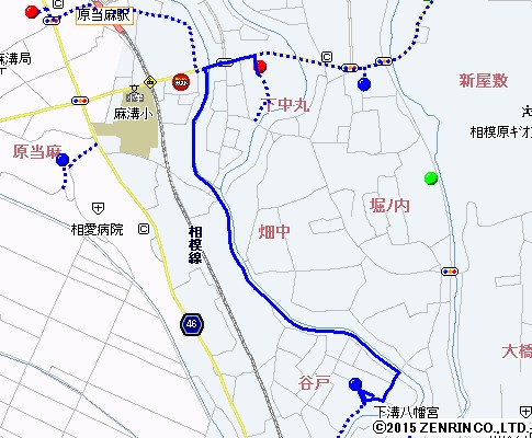 距離:1440m 標高 出発:73.3m 到着:67.2m 最高:73.3m 最低:61.8m
