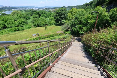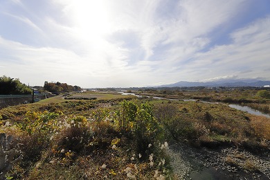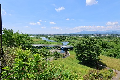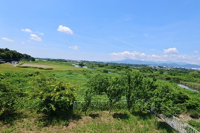 ⇐相模川方面(奥の山並みは大山や丹沢山塊です。)