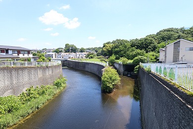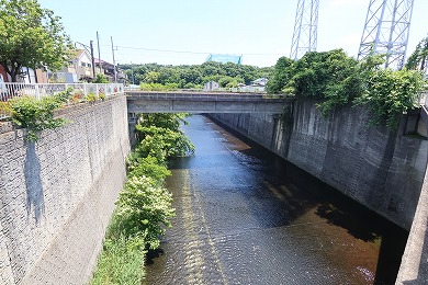 左から「鳩川」、中央は「道保川」、右端は麻溝台方面からの雨水路です。