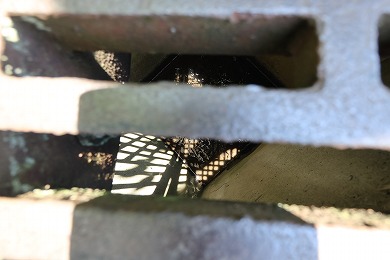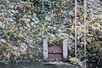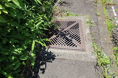 梯子の下に、用水路の取水口(農業用水。消防水利)があります。