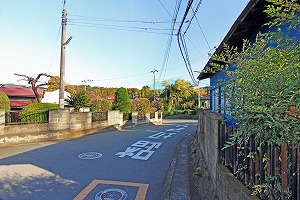 踏切を渡り、道なりに行きます。