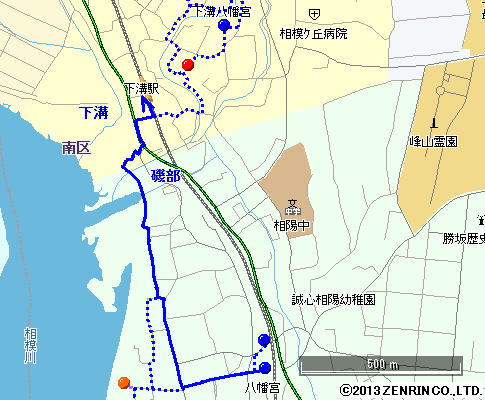 距離:1360m 標高 出発:54.9m 到着:62.0m 最高:62.0m 最低:38.7m