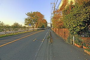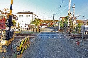 (踏切の手前を左折すると、JR相模線の下溝駅です。)