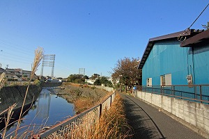 橋を渡り、左の遊歩道へ。