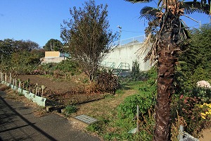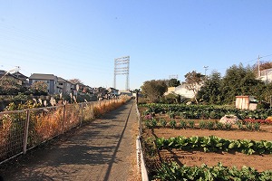 ここを左へ、畑を横切り、階段を登ります。