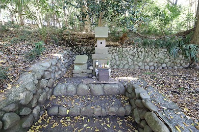 皇国地誌に「其の霊璽を崖下の横穴(内径一尺)に奉安し」とあり、ご神体の石をこの地に奉じたものと思われる、と。