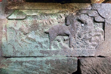 むかしの祠に、鹿でしょうか?