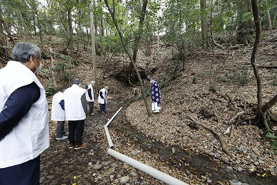 祭式の後に、石祠のさらに奥にある湧水の湧き出し口から宮司と総代の代表が水を汲むといったことがなされており、この水は海老名の有鹿神社まで持ち帰ります。