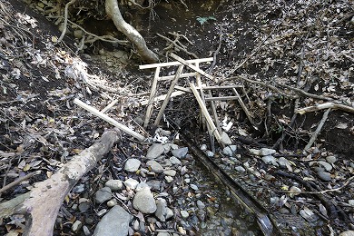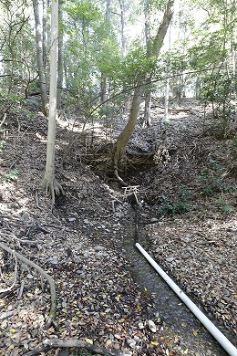この奥のところから、湧き水が出ています。