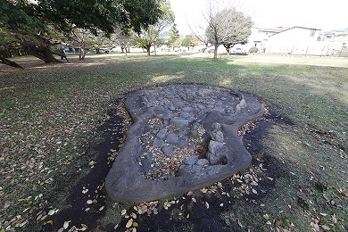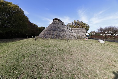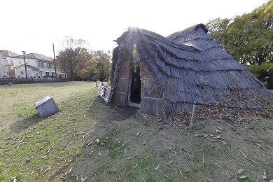 当時の住居は、地面を掘りくぼめて床とし、柱を立てて屋根でおおう竪穴住居(たてあなじゅうきょ)と呼ばれるもので、床に石を敷き詰めた敷石住居(しきいしじゅうきょ)も発達します。勝坂遺跡では、このような住居が大きくみて4か所に集まって集落となっていたことがわかっており、それぞれの集落には広場や墓地などがあったと考えられます。