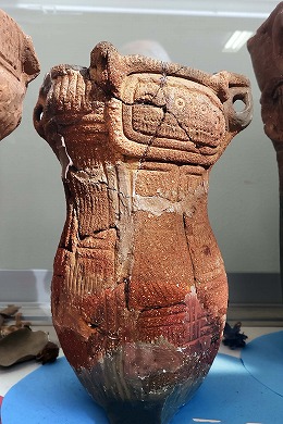 蛇文の方は、顔が三角に近いことからマムシの文様ではないかと言われ、マムシに対する恐怖と畏敬、つまり、呪術と祈りを蛇体文を通して表現したのであろうとされている。