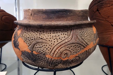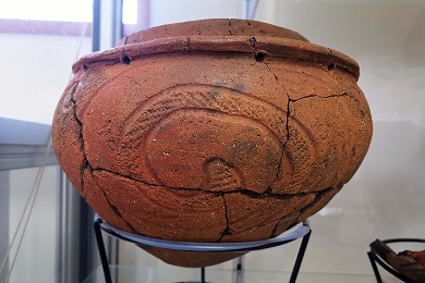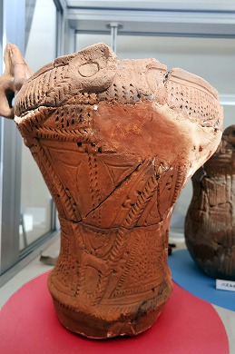 蛇文の方は、顔が三角に近いことからマムシの文様ではないかと言われ、マムシに対する恐怖と畏敬、つまり、呪術と祈りを蛇体文を通して表現したのであろうとされている。