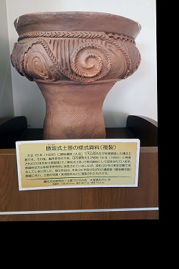縄文時代を代表する土器の一つ。立体的、彫刻的で豪快、奔放な趣きがある。大山拍によって相模原市勝坂から発掘され、後に山内渭男らによって「勝坂式」と名づけられた。縄文中期の中でも加曽利E式よりも古く、阿玉台式に時期的に近いという、土器編年上、確固たる位阻を占めるに至った。