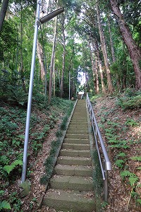 磯部勝坂地区の鎮守として集落を見下ろす丘の頂上にあります。