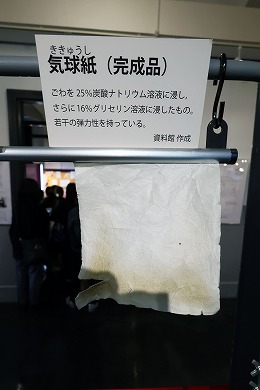 気球は和紙をコンニャクで五回ほどうまく貼り合わせ、作っていました。コンニャクを使用することで、気体がもれること無く、アメリカまで飛んで行ったそうです。