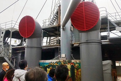 艦船のエンジンルームは大量の熱と排気ガスを発生させます。そのため、艦内の換気システムは非常に重要です。 ベンチレーターの数や位置は、エンジンから発生する熱や排気ガスを効果的に排出し、乗組員の安全と快適性を維持するために設計されています。