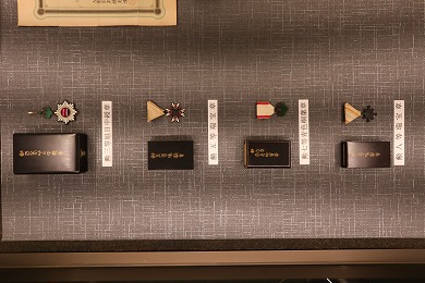 明治21年(1888年)に制定された勲章制度の一つで、左から勲三等旭日中綬章、勲五等瑞宝章、勲七等瑞宝章、勲八等瑞宝章の勲章です。