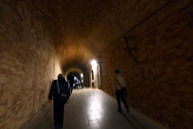 階段を下ったところに、予備の砲弾を置いていたのでしょうか。