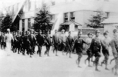 ・隊列を組み、軍歌を歌って工場へ行った。