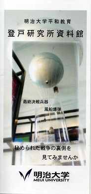 登戸研究所は、 1939 (昭和14)年に設立された帝国陸軍所管の研究所で、 生物化学兵器、 電波兵器、 風船爆弾、 中国貨幣の偽札等の謀略戦兵器を開発した研究所でした。 戦後、明治大学の敷地になり研究所の一部が資料館になりました。