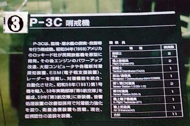 ② がそのP3Cプロペラ機で、胴の中に沢山の「ソノブイ(吊下式ソナー内蔵の無線浮標で、主に航空機から投下して使用する使いきりの対潜水艦用音響捜索機器)」を抱えているので胴体が太い。平成30年に後継機P1(ジェット機)と交代したといわれるが、実際はまだ飛んでいるようである。