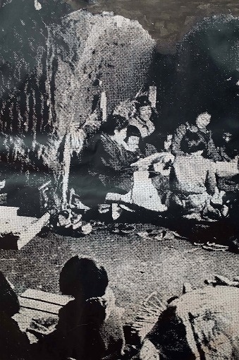 最初の日本空襲は昭和17年4月18日のドウリトル中佐のB25による空襲。これは陸軍機に乗せて房総沖から発信させ、東京・名古屋などを空襲の後、日本海を飛んで中国大陸の中国軍飛行場に着陸させた。但し燃料などの関係から何機かは誤って日本軍の飛行場に降り、8人が捕虜となってそのうち3人が無差別銃撃などの罪で処刑されている。大戦末期となると重爆撃機B29による夜間の焼夷弾空襲が頻繁となり、3月10日の夜の東京空襲(B29 200機)、7月16日の夜の平塚空襲(B29 60機)など。加えて硫黄島からは小型機のP51が連日飛来し、機銃掃射などで人々を悩ませた。こうなると防空壕だけが頼りとなる。左の写真は 某新聞社のものだが、家族ぐるみの防空壕暮らしが日常のものとなってくる。ただ、庶民の者は土を掘り、支え柱を立て、その上に炭がらを乗せるくらいの粗末なものだったので「いざという時の役」に立たないものが多かった。